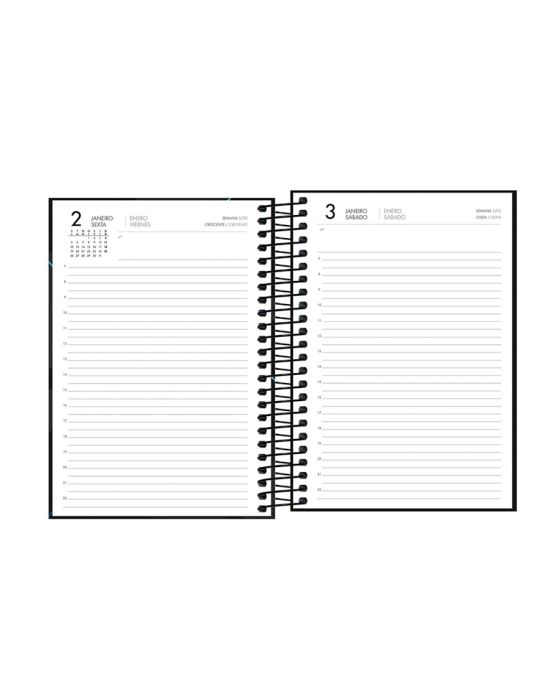 Características:Organize seu dia a dia com a agenda executiva espiralada Spot da Tilibra. O produto tem tamanho 12,9 x 18,7 cm, capa dura com visual neutro e moderno, bolsa plástica, folhas com visão de um dia por página e pautas com horário entre 7h e 22h. Esta agenda diária 2025, que possui 200 folhas, é uma ótima opção para garantir um planejamento detalhado e eficiente.Detalhes:- Marca: Tilibra;- Modelo: Spot;- Referência: 110591;- Linha: Planners e Agenda;- Ano: 2025;- Tipo: Espiral;- Capa: Capa Dura com laminação fosca e detalhe metalizado (Estampas sortidas);- Contra capa: Contra capa simples;- Quantidade de folhas: 200 folhas;- Contém: 1 unidade do produto com 200 folhas;- Formato: 129 x 187mm (12,9 x 18,7cm);- Gramatura: 63g/m2;- Espiral: Preta;- Folhas: pautadas Preta;- Cor das folhas: Branca;- Visão: Diária;- Possui bolsa plástica para guardar documentos e arquivos impressos;- Índice simples;- Planejamento mensal;- Produto certificado: FSC.Indústria Brasileira.Páginas:- 1 páginas para dados pessoais;- 2 páginas de calendário (1 folha calendário 2025 e 1 folha calendário 2026);- 2 páginas com feriados internacionais 2025;- 5 Páginas de planejamento 2025;- Páginas correspondentes ao dia e mês com espaço para escrita;- 12 páginas para anotações;- 4 páginas quadriculadas.Composição:- Capa: Fabricado em papelão e papel couché;- Folhas Internas: Papel Offset 63g/m2.Medidas:- Dimensões do produto: 129 x 187mm (12,9 x 18,7cm);- Gramatura: 63g/m2.Estampas sortidas, será enviado de acordo com a disponibilidade do estoque. Não é possível escolher uma estampa específica.* As especificações podem ser alteradas sem aviso prévio ** Imagem meramente ilustrativa.