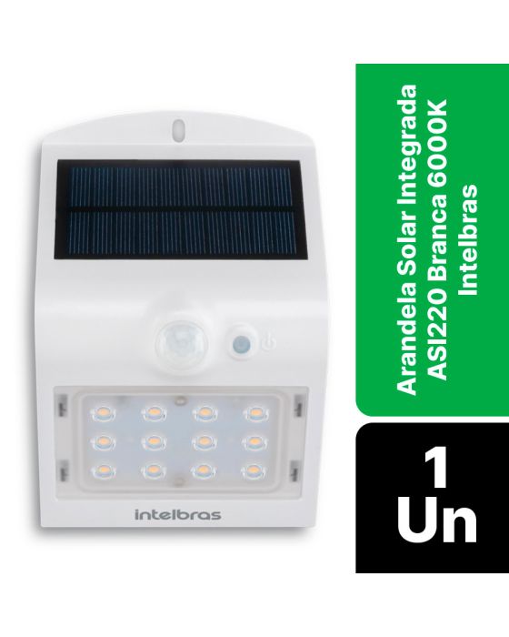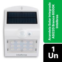 Características:Autonomia:Funciona por até 3 noites mesmo sem geração de energia solar para carregamento.Acionamento automático:Permanece desligada durante o dia e acende automaticamente ao cair da noite.Livre de fios:Instale facilmente sem precisar se preocupar com cabos ou conexão com a rede elétrica convencional. É só fixar na parede em até 3 metros de altura.Iluminação indiretaCom a intensidade certa para deixar o ambiente mais confortável e aconchegante na sua área externa.Autonomia:Detalhes:Marca: Intelbras;- Modelo: Arandela solar;- Referência: ASI220;- Linha: Luminárias;- Cor produto: Branca/Preta;- Temperatura de cor: Branca - 6000K;- Contém: 1 unidade do produto;- Grau de proteção: IP65;- Local de uso: Uso externo;- Simples e fácil de instalar;- Alta eficiência na conversão de energia;- 220 lm de fluxo luminoso;- Funcionamento inteligente para economia de bateria;- 2 Modos de trabalhos;- Autonomia de até 3 noites.Onde usar:- Residências e indústrias.Aplicação:- Parede.Modos de funcionamento:- No Modo Sempre Aceso, a arandela permanece a noite toda com baixa iluminação, e ao detectar movimento entrega máxima potência;- No Modo Econômico, a arandela permanece com a iluminação frontal desligada, e ao detectar movimento entrega máxima potência;- Em ambos os modos as iluminação indireta permanecerá acesa durante toda noite.Especificações gerais:- Quantidade de LEDs: 14 (12 LEDs frontais e 2 LEDs traseiros);- Potência máxima: 1,5W;- Fluxo luminoso máximo: 220 lm;- Temperatura de cor: Branca 6000K;- Ângulo de abertura: 120°;- IRC =80;- Eficiência luminosa: 146,6 lm/W;- Temperatura de funcionamento -10 °C a 50 °C;- Sensor de presença: Detecta movimentos em até 10 metros de distância.Instalação: - Altura de instalação: Até 3 metros de altura;- Distância entre luminárias: Entre 4 e 6 metros.Energia:- Painel Solar: 0,7W, silício monocristalino;- Bateria: 3,7V, 4000 mAh, lítio recarregável;- Tempo de recarga: 8 horas de luz solar;- Autonomia: Até 3 noites;Medidas:- Dimensões do produto: 9,6 × 14,46 × 7,9cm (LxAxP);- Peso: 210g.Conteúdo da embalagem: 1 Luminária Solar, 1 Kit fixação (2 buchas e 2 parafusos) e 1 Manual do Usuário.Garantia do fornecedor: 1 ano contra defeitos de fabricação.Instalação:- Se caso precisar de um instalador, a Intelbras possui um técnico qualificado, acesse em: https://www.intelbras.com/pt-br/onde-encontrar/localizacao/produto/categoria/subcategoria/interesse.** Este serviço é de responsabilidade da Intelbras, não possuindo vínculo com a Contabilista.** Pode ocorrer cobrança pelo serviço prestado.* As especificações podem ser alteradas sem aviso prévio ** Imagem meramente ilustrativa.
