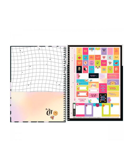 CaracteristicasO Caderno Espiral Capa Dura Universitário 10 Matérias Capricho 160 Folhas possui capa dura com a parte interna decorada, bolsa de papel decorada para guardar trabalhos e anotações, folha com adesivos funcionais, folhas pautadas decoradas e espiral colorido. Ideal para o dia a dia na escola ou na faculdade.- Bolsa: de papel decorada- Capa dura- Capa acabamento: com detalhe metalizado- Espiral: colorido- Folha de adesivos- Folhas: pautadas decoradas- Índice/separador de matérias: decorados- Miolo- Número de matérias: 10 matérias- Parte interna da capa decorada- Produto certificado: FSC- Formato: 200mm x 275mm- Gramatura: 56 g/m²- Número de folhas: 160 folhas* As especificações podem ser alteradas sem aviso prévio ** Imagem meramente ilustrativa
