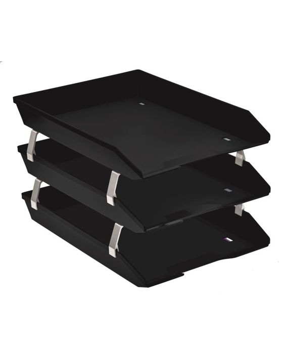 Carcateristicas:-Fabricada em poliestireno-Preto-Possui 3mm de espessura de parede, garantindo robustez e resistência-Tamanho ofício -Entrada frontal de papéis, facilitando o manuseio dos mesmos-Suas hastes são em alumínio, para mais estabilidade e segurança no uso-O produto vem desmontado na embalagem, com instruções de montagem simples-Design inovador : você pode brincar com as cores. Comprando caixas de cores diferentes é possível intercalar as caixas e deixar coloridas.* As especificações podem ser alteradas sem aviso prévio ** Imagem meramente ilustrativa.