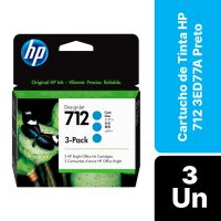 Características:Imprima documentos com cores nítidas e intensas. As tintas HP originais oferecem uma resistência extraordinária à descoloração e confiabilidade e desempenho superiores.A qualidade da HP que você conhece e confia agora mais acessível do que nunca. Imprima documentos e fotos resistentes à água e manchas e economize em impressão freqüente com os cartuchos originais HP.Detalhes:- Marca: HP;- Modelo: 712;- Referência: 3ED77A;- Linha: Cartuchos;- Cor: Ciano;- Volume cartucho: 29ml cada;- Contém: 1 embalagem com 3 unidades do produto;- Tecnologia de impressão: Jato de Tinta;- Produto Original.Fabricado na Malásia.Impressoras Compátiveis:- Modelos Impressora HP DesignJet T210, Impressora HP DesignJet T230, Impressora HP DesignJet T250, Impressora HP DesignJet T630, Impressora HP DesignJet T650 e Impressora HP DesignJet Studio.Medidas:- Dimensões embalagem: 12 x 4,7 x 12,5cm (CxLxA).Descarte de Cartuchos e Toners:- Você pode fazer o descarte com ajuda do ReCiclo, um projeto da Contabilista através da Contabilista Responsável, basta enviar os seus resíduos para a nossa Central de Distribuição*, se você é de Curitiba ou de Joinville, pode ir até uma de nossas lojas ou preencher o formulário disponível no site para solicitar retirada de materiais.Acesse o Link para verificar as marcas que reciclamos e nossos endereços: https://www.contabilistaresponsavel.com.br/reciclo.* Enviar conteúdo aos cuidados do Setor de Reciclagem.** Atenção: Cartuchos e Toners compatíveis não entram no descarte do ReCiclo, apenas suprimentos originais de nossos parceiros (confira a lista no link acima).Conteúdo da embalagem: 3 Cartuchos de Tinta 712 3ED774.* As especificações podem ser alteradas sem aviso prévio ** Imagem meramente ilustrativa.