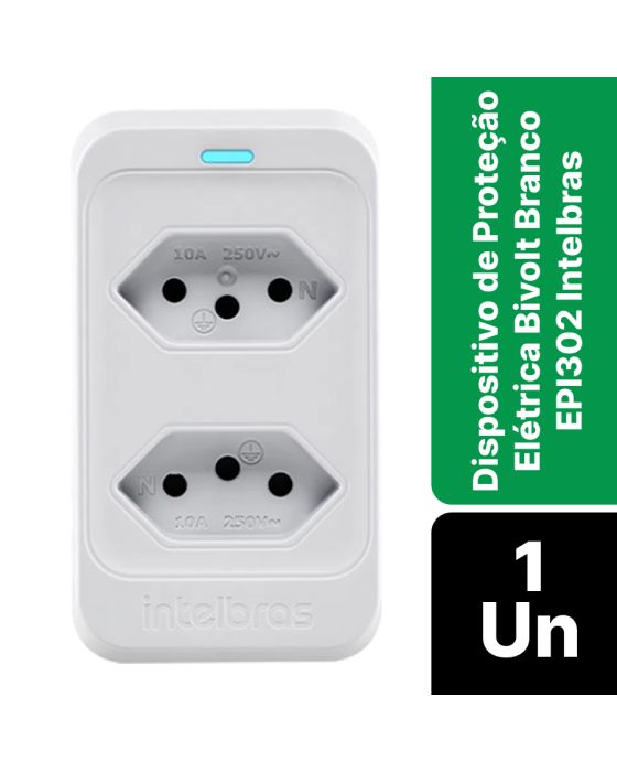 Características:3× mais proteção:O EPS 302 é um dispositivo de proteção elétrica bivolt com 2 tomadas que protege seus equipamentos contra raios, surtos de tensão e sobrecarga.Filtro de linha contra interferências e ruídos:Melhore a qualidade de imagem e áudio dos equipamentos conectados à redeProteção total contra surtos nos 3 pinos:O EPS 302 protege todas as entradas, entre elas o condutor terra, que proporciona segurança contra choques elétricos.Detalhes:- Marca: Intelbras;- Modelo: Dispositivo de Proteção Elétrica Intelbras EPS 302 BR Branco;- Referência: EPS 302 BR;- Linha: Dispositivo de Proteção Elétrica;- Cor: Branco;- Voltagem: Bivolt;- Local de uso: Uso interno;- Quantidade de tomada: 2 tomada;- Contém: 1 unidade do produto;- Pinos: 3 Pinos;- 3× mais proteção.Ideal para:- Idela para proteger e prolongar a vida útil dos seus equipamentos, como: Eletroeletrônicos, Games, Televisores e Eletrodomésticos.Características Técnicas:- Dispositivo de proteção contra surtos de tensão nos três condutores de entrada (Fase, Neutro e Terra) 3x mais proteção;- Proteções contra curto-circuito e sobrecarga;- Proteção térmica do DPS, prevenindo aumento excessivo de temperatura durante surtos da rede;- Filtro de linha para atenuação de interferências e ruídos EMI/RFI;- LED indicativo de proteção ativa dos dispositivos conectados ao EPS 302;- 100 a 240 Vac bivolt automático – 50/60 Hz.Medidas:- Dimensões do produto: 10,3 x 5,8 x 7cm (CxLxA);- Peso: 0,96kg.Conteúdo da embalagem: 1 Dispositivo de Proteção Elétrica Intelbras EPS 302 BR Branco.Garantia do fornecedor: 1 ano contra defeitos de fabricação.IMPORTANTE! ESTE PRODUTO NÃO É UM ESTABILIZADOR DE VOLTAGEM!* As especificações podem ser alteradas sem aviso prévio ** Imagem meramente ilustrativa.