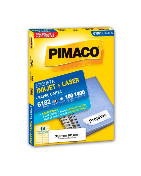 Características: - Dimensões da etiqueta : 3,39 x 10,16 cm- Quantidade de etiquetas por embalagem: 1.400 etiquetas- Quantidade de etiquetas por folha: 14 etiquetas- Cor: branco- Etiqueta retangular- Adesivo permanenteDicas de uso:• Etiquetas brancas para impressoras e copiadoras em folhas formato Carta.• Impressão Inkjet + Laser.• Ideal para uso em correspondências, pastas, documentos, caixas, pequenos objetos, entre outros.• Utilize o software Pimaco para facilitar a impressão: www.pimaco.com.* As especificações podem ser alteradas sem aviso prévio ** Imagem meramente ilustrativa
