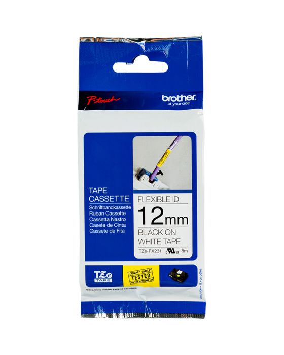 Características:A fita Brother TZEFX231 são ideais para a identificação superfícies cilíndricas, como cabos e fios, encanamentos e outras superfícies tubulares, como tubo de teste, conectores elétricos etc. Conta tecnologia e laminação única e flexível são resistentes e duráveis que podem ser expostas a condições extremas e outras condições sem que ela desbote, além disso possui alta aderência, sendo um produto perfeito para atender a demanda de prestadores de serviços elétricos, hidráulicos e de telefonia.A linha TZE possui etiquetas laminadas, resistentes a temperaturas extremas, resistentes à água, abrasão e a produtos químicos, além de não desbotarem e possuírem uma película de proteção fácil de destacar.Detalhes:- Marca: Brother;- Modelo: TZEFX231;- Linha: Fitas Rotuladoras;- Família: Linha TZE;- Cor da fita: Branco;- Cor da escrita: Preto;- Tamanho: 12mm;- Contém: 1 unidade do produto;- Fita laminada e flexível;- Não desbota;- Possui alta aderência;- Durável;- Atóxica.Indicada para:- A TZEFX231 foram projetadas com uma tecnologia própria para identificar superfícies cilíndricas, como cabos e fios, encanamentos e outras superfícies tubulares, como tubo de teste, conectores elétricos etc.Compatibilidade:- Compatível com os modelos de rotuladores: PTH110, PTD210, PTP300BT, PTH110BK, PTE300VP, PTE110, PTE500VP, PTE550WVP, PTP700, PTP750W, PTP900W e PTP950NW.Resistência:- Temperaturas extremas (-80°C até +150°C);- A água, sol, umidade, substâncias químicas, abrasão, poeira, áreas sujeitas à chuvas e frio.Tipo de fita:- Laminada, flexível e ecológica.Medidas:- Largura: 12mm (1,2cm);- Comprimento: 8m.* As especificações podem ser alteradas sem aviso prévio ** Imagem meramente ilustrativa.