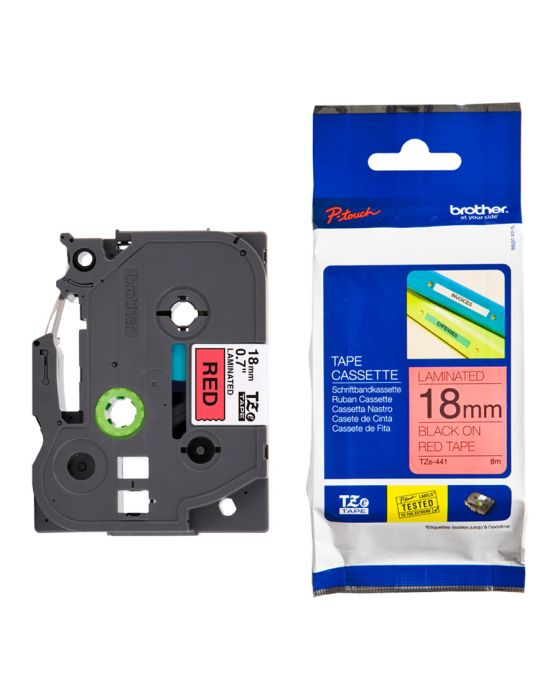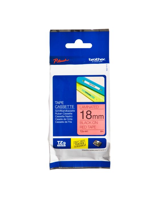 Características:A Fita Brother TZE441 é ideal para a etiquetagem em geral em superfícies lisas e planas, com texto preto e fundo vermelho, garante que fita esteja sempre em destaque. Sua escrita fica legível por muito tempo e devido a tecnologia única laminada a torna resistente e durável ideal para todos os tipos de ambientes e para uso doméstico e profissional como escritórios, unidades educacionais, saúde e hotéis.A linha TZE possui etiquetas laminadas, resistentes a temperaturas extremas, resistentes à água, abrasão e a produtos químicos, além de não desbotarem e possuírem uma película de proteção fácil de destacar.Detalhes:- Marca: Brother;- Modelo: TZE441;- Linha: Fitas Rotuladoras;- Família: Linha TZE;- Cor da fita: Vermelho;- Cor da escrita: Preto;- Tamanho: 18mm;- Contém: 1 unidade do produto;- Fita laminada;- Não desbota;- Possui alta aderência;- Durável;- Atóxica;Indicada para:- A TZE345 é indicada para superfícies planas e lisas.Compatibilidade:- Compatível com os modelos de rotuladores: PTE300VP, PTE500VP, PTE550WVP, PTP700, PTP750W, PTP900W e PTP950NW.Resistência:- Temperaturas extremas (-80°C até +150°C);- A água, sol, umidade, substâncias químicas, abrasão, poeira e luz solar e poeira.Tipo de fita:- Laminada e ecológica.Medidas:- Largura: 18mm (1,8cm);- Comprimento: 8m.* As especificações podem ser alteradas sem aviso prévio ** Imagem meramente ilustrativa.
