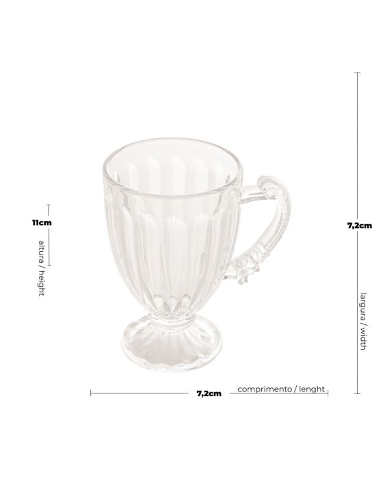 Características:A Xícara de Chá de Cristal com Pé Imperial da Lyor é a escolha perfeita para quem busca uma experiência de chá refinada e elegante. Com um design clássico, esta xícara destaca-se pelo pé imperial, conferindo um toque de sofisticação aos seus momentos de degustação.Material PremiumFabricada em cristal de alta qualidade, a xícara oferece transparência excepcional, brilho notável e uma sensação de requinte durante o uso.Design Pé ImperialO destaque desta xícara está no elegante pé imperial, que eleva a peça, proporcionando uma apresentação única e sofisticada.Versatilidade e EstiloAlém de ser funcional para a degustação de chá, a Xícara de Chá com Pé Imperial da Lyor é uma peça decorativa que agrega elegância à sua mesa, tornando cada momento de chá especial.Detalhes:- Marca: Lyor;- Modelo: Imperial;- Referência: 1382;- Linha: Xícaras;- Tipo: Conjunto;- Cor: Cristal;- Capacidade: 200ml cada;- Contém: 1 embalagem com 6 unidades do produto;- Exterior texturizado;- Design versátil e estiloso;- Material premium;- Xícara com pé imperial.Ideal para:- Ideal para salas de reunião, lanchonetes, restaurantes, panificadora e confeitaria, hotéis e demais estabelecimentos que querem manter a sofisticação em seus serviços.Limpeza e cuidados:- Lavar com detergente neutro, esponja macia e secar imediatamente; - Não lavar em máquinas e não utilizar produtos químico.Recomendações:- Este produto não pode ir ao Micro-Ondas e Lava Louças, fornos, freezer e fogões.Composição: - Fabricado em Cristal.Medidas:- Dimensões do produto: 10 x 7 x 10,5cm (CxLxA);- Dimensões da embalagem: 22,4 x 14,5 x 11,7cm (CxLxA);- Peso: 0,22kg.Conteúdo da embalagem: 6 Xícaras de Cristal com pé Imperial 200ml Lyor. As especificações podem ser alteradas sem aviso prévio ** Imagem meramente ilustrativa.