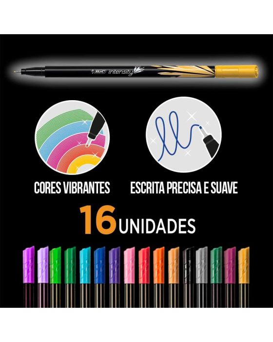 Características:A BIC está trazendo uma solução completa para você que está iniciando na arte de Lettering: com o Kit Lettering, você tem um novo mundo de exploração criativa e diversão expressiva na ponta dos seus dedos.Detalhes:- Marca: Bic;- Modelo: Kit Lettering Intensity;- Referência: 902482;- Linha: Canetas Hidrográficas e Marcadores;- Cores: sortidas;- Contém: 1 blister com 48 itens com cores sortidas;- Explore a criatividade e diversão.Prazo de validade indeterminado.Ideal para:- Ideal para quem está iniciando a prática de lettering.Itens da embalagem:- 16 Canetas Intensity Extra fina: Ponta Hidrográfica extra fina de 0.4mm;- 12 Canetas Intensity Medium: Ponta Hidrográfica média de 1.0mm;- 12 Marcadores Permanentes Intensity: Ponta de 1.1mm;- 5 Canetas Dual Tip / Ponta Duo: Ponta Hidrográfica rotulador 3.7 / 0.7mm;- 3 Canetas Ponta Brush / Ponta Pincel: Ponta Hidrográfica boligrafo.Conteúdo: 1 Kit Lettering Marcador Permanente Intensity C/48 Bic.ATENÇÃO! NÃO RECOMENDÁVEL PARA CRIANÇAS DE ATÉ 4 (QUATRO) ANOS POR CONTER PARTE(S) PEQUENA(S) QUE PODE(M) SER ENGOLIDA(S) OU ASPIRADA(S) E PONTA(S) AGUDA(S) FUNCIONAL(IS). CRIANÇAS ENTRE 5 (CINCO) E 8(OITO) ANOS SOMENTE DEVE UTILIZAR SOB SUPERVISÃO DE UM ADULTO.* As especificações podem ser alteradas sem aviso prévio ** Imagem meramente ilustrativa.
