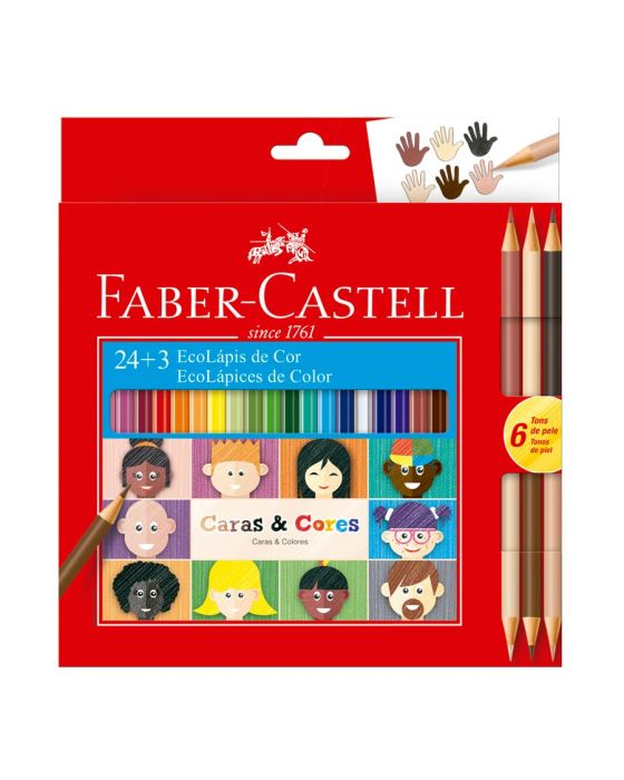 Lapis De Cor Ecolapis Caras E Cores 24 Cores + 3 Tons De Pele Faber-castell