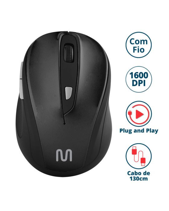 Caracteristicas- Mouse emborrachado - Design Anatômico - 6 Botões- DPI ajustável: 400/ 800/1200/ 1600 DPI - Botões laterais multimídia (avançar/ retornar) - Plug&Play - Cor: Preto- Garantia: 3 Anos contra defeitos de fabricação- Dimensões: 4,0 x 7,0 x 11,0cm- Peso: 55g- Conteúdo da embalagem: 1 Mouse com Fio USB * As especificações podem ser alteradas sem aviso prévio ** Imagem meramente ilustrativa