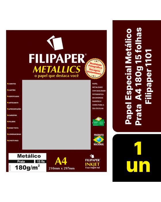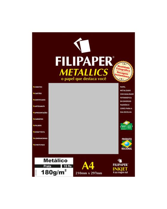 Papel Especial Metalico Prata A4 180g 15fls Filipaper 01101