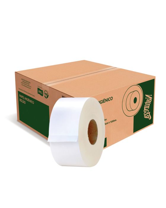 Papel Higienico Folha Simples Rolao 300m Branco Natureza Pt C/8 Rolos Ipel 10069