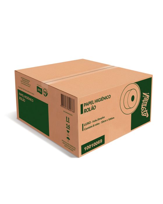 Caracteristicas:Papel higiênico rolao folha simples Ipel é um papel higiênico de alto padrão de qualidade com folhas simples. Proporciona um bom custo x benefício no uso final do produto.Detalhes:- Marca: Ipel.- Modelo: Luxo - 10069.- Linha: Papel Higiênico.- Tipo: Rolão folha simples.- Cor: Branco.- Contém: Caixa com 8 rolos.- Medidas: 10cm x 300m.- Medidas Tubete: 7cm.- Gramatura: 16g.- 100% fibras de celulose virgem.Ideal para:- Industrias, restaurantes, empresas e comercio em geral, escolas, Faculdades, orgaos publicos, instituição privada, clinicas medicas e odontologicas, laboratorios, Hospitais, instituicoes religiosas, etc.* As especificações podem ser alteradas sem aviso prévio ** Imagem meramente ilustrativa