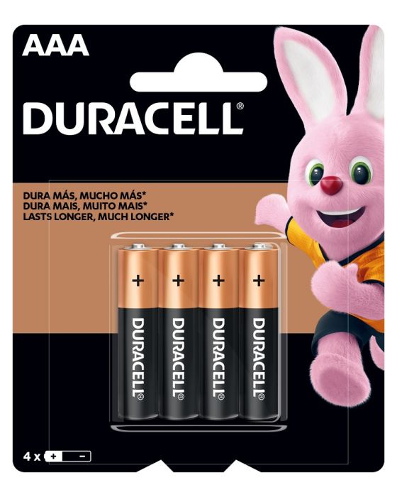 Caracteristicas:As pilhas Duracell Básicas AAA são pilhas alcalinas multifuncionais confiáveis e ideais para dispositivos do dia a dia que precisam daquela energia extra. tecnologia Duralock mantém pilhas não utilizadas novas e carregadas por até 10 anos em armazenamento ambiente. Essas pilhas dão a você a liberdade de aproveitar os seus dispositivos ao oferecerem um produto confiável. As pilhas Duracell são as melhores quando se busca energia confiável e de longa duração para os dispositivos do dia a dia, como brinquedos motorizados, lanternas, consoles de jogos portáteis, controles remotos, CD players, etc.- Tipo: Alcalina AAA- Com 4 unidades* As especificações podem ser alteradas sem aviso prévio ** Imagem meramente ilustrativa.