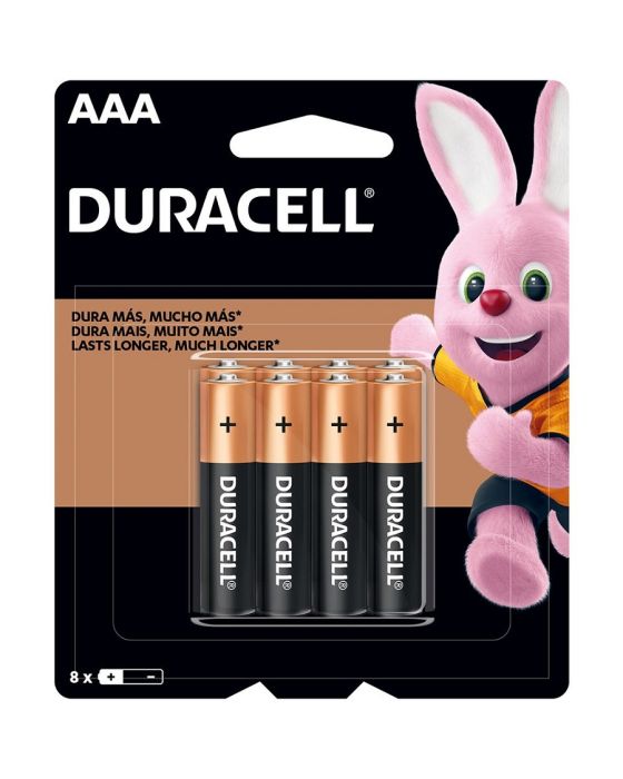 Caracteristicas:A energia das pilhas AAA da Duracell dura até 10 vezes mais*. Esses produtos multiuso são adequados para energizar dispositivos do dia a dia. As pilhas AAA da Duracell lhe dão a liberdade de usar seus aparelhos ao oferecerem um produto em que você pode confiar. A melhor ocasião para usá-la é quando você precisa de energia confiável e de longa duração em seus dispositivos do dia a dia, como brinquedos motorizados, lanternas, consoles de videogame portáteis, controles remotos, tocadores de CD, etc. A tecnologia Duralock mantém novas as pilhas Duracell inutilizadas, que permanecem carregadas por até 10 anos em condições de armazenamento ambientes.- Tipo: Alcalina AAA- Com 8 unidades*vs. pilhas comuns de zinco-carbono. Os resultados podem variar por dispositivo.* As especificações podem ser alteradas sem aviso prévio ** Imagem meramente ilustrativa.