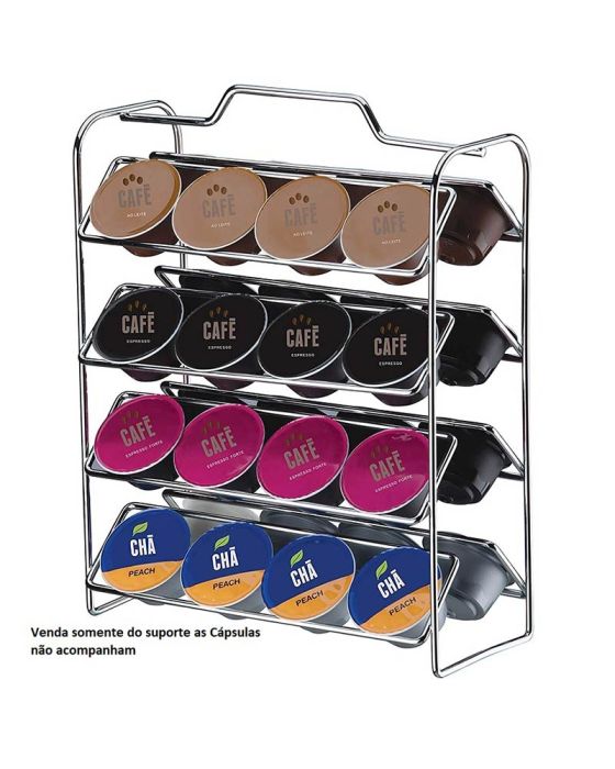 Características:Chega de bagunça no seu Escritório!Conheça a linha de Organizadores para Cápsulas de Dolce GustoCom os Suportes de Cápsulas Future, a sua Copa sempre fica organizada- Marca: Future- Capacidade: 32 cápsulas- Organizador na cor prateada- Material: Metal Cromada- Garantia de 5 anos com o fabricante- Compatível com Cápsulas de Dolce Gusto Nestlé- Dimensões (A x L x P): 27,5 x 22,5 x 11cm- Referência do Fabricante: 1145É recomendada a limpeza utilizando-se pano macio ou flanela seca.Para a remoção de gordura e ou sujeira aderente, utilize água e sabão neutro em um pano macio.Importante: Evite danos no acabamento do produto.Nunca utilize materiais abrasivo como: lãs de aço, buchas ásperas ou componentes químicos com solventes.* Imagens meramente Ilustrativas** Ambientação, decorações e Cápsulas não acompanham o produto*** Cápsulas devem ser compradas separadamente