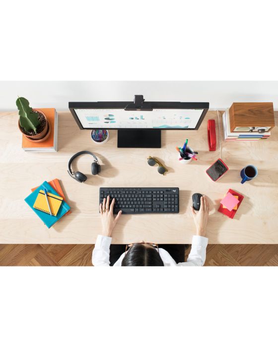 Características Conheça o Logitech MK295 Silent Wireless Combo com SilentTouch — uma tecnologia exclusiva da Logitech que elimina mais de 90% do ruído do teclado e do mouse. É a mesma sensação de clicar e digitar do combo mais vendido do mundo, sem cliques e sons de digitação perturbadores.- Menos ruído, mais foco: Mantenha o foco em seu trabalho e evite distrações. Conheça o Logitech MK295 Silent Wireless Combo com SilentTouch - uma tecnologia exclusiva da Logitech que reduz mais de 90% do ruído do teclado e do mouse.- Trabalhe com menos distrações: Nossa inovadora tecnologia SilentTouch reduz mais de 90% do ruído de sons perturbadores para você e aqueles ao seu redor - tudo isso enquanto mantém a sensação familiar de digitar e clicar do combo mais vendido do mundo.- Conforto em tramanho padrão: O teclado de tamanho padrão oferece tudo que você precisa em um design elegante e eficiente. 8 atalhos convenientes mais o teclado numérico completo simplificam a entrada de dados e a navegação.- Mouse confortável e compacto: Formato arredondado e portátil. Cliques e pontos suaves e precisos na maioria das superfícies. Sem mencionar o silêncio impressionante possibilitado pelo SilentTouch.- Sem fio, sem atrasos: Esqueça as falhas e atrasos graças a uma conexão sem fio forte e confiável de 2,4 GHz com um alcance de 10 m. Libere espaço em sua mesa com um receptor USB - tão pequeno que pode permanecer no seu computador.- Durável e confiável: Design à prova de derramamentos, suas teclas duráveis e seu suporte ajustável resistente conferem uma camada extra de utilidade e conforto.- Longa autonomia das pilhas: Com vida útil das pilhas de até 36 meses no teclado e até 18 meses no mouse, além de botões para ligar/desligar, você não terá de se preocupar com a troca de pilhas durante meses.Especificações- Alcance Wi-Fi: 10m - Teclado - Tecnologia SilentTouch - Altura do teclado ajustável - Design resistente a derramamentos - 2.4GHz wireless (10 meters) - Nano USB receiver - Luz indicadora da tecla Caps Lock - Botão liga/desliga - 2 pilhas AAA (alcalinas) - Mouse - Tecnologia SilentTouch - Contoured compact shape - Smooth, responsive cursor control - On/off power button - 1 AA batteries (Alkaline Battery)- Garantia: Garantia de hardware limitada de um ano- Requisitos do sistema: Windows 10,11 ou superior / Chrome OS™ / Porta USB disponível necessária.- Dimensões (AxLxP) - Teclado: 14,9 x 44,1 x 1,8cm - Mouse: 9,9 x 6 x 3,9cm - Nano receive: 1,44 x 1,87 x 0,61cm- Peso - Teclado (com baterias): 498g - Mouse (com baterias): 75,2g - Nano receive: 1,8g- Cor: Preto- Conteúdo da embalagem: 1 Teclado com 2 pilhas AAA, 1 Mouse com 1 pilha AA, 1 Receptor USB (na aba da caixa), Documentação do usuário.* As especificações podem ser alteradas sem aviso prévio ** Imagem meramente ilustrativa