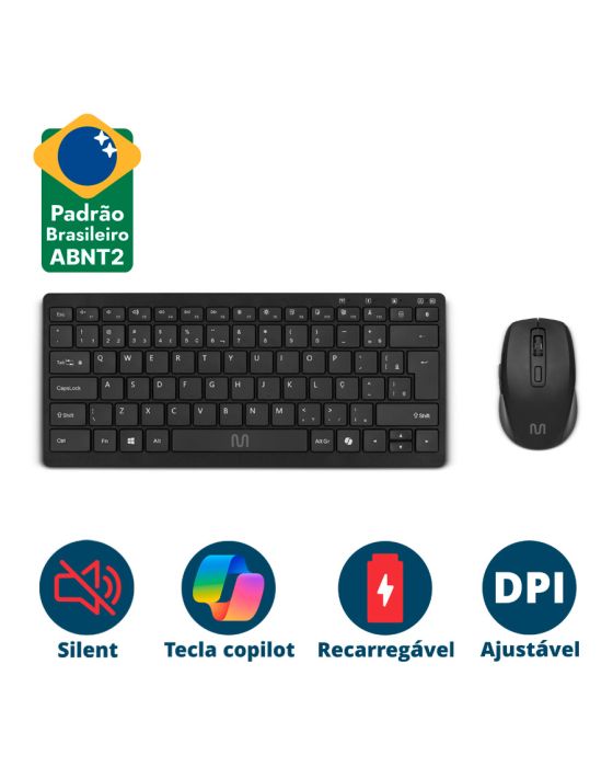 Teclado E Mouse Sem Fio Recarregavel Cs500 Silencioso Tc404 Multi