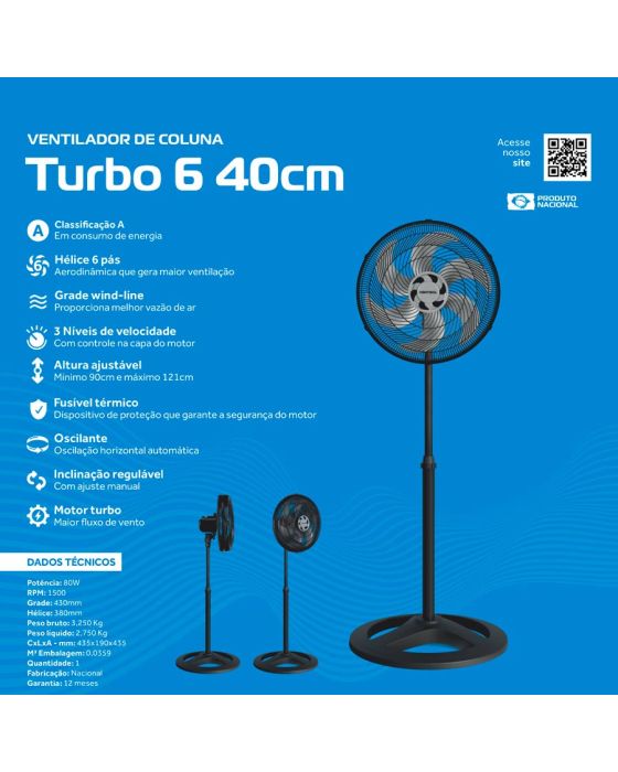 Ventilador De Coluna Turbo Premium 6p 80w 40cm 220v Ventisol