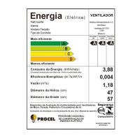 Características:Diga adeus aos dias quentes com o Ventilador de Parede Britânia Maxx Force 176W BVT575! São 176W de potência e tecnologia Maxx Force, com 6 pás de 47cm que, juntos, garantem altíssimo desempenho e poder de ventilação.Além disso, não vai faltar praticidade no momento da limpeza do seu Ventilador. Ele é muito fácil para montar, desmontar e limpar, pois conta com grade de 57cm e total flexibilidade.Sem falar que o Ventilador Britânia é equipado com sistema de articulação que permite o ajuste em 3 opções de oscilação vertical e oscilação horizontal automática.O Ventilador de parede Britânia BVT575 foi desenvolvido com motor que possui sistema que interrompe o funcionamento do produto quando há superaquecimento.O clima perfeito nos dias mais quentes!Detalhes:- Marca: Britânia;- Modelo: Maxx Force;- Referência: BVT575;- Linha: Ventiladores;- Cor: Preto;- Tensão: 220V;- Potência: 176W;- Tipo de instalação: De parede;- Contém: 1 unidade do produto;- Número de velocidades: 3 velocidades (suave, moderada e intenso);- Quantidade de pás: 6 pás;- Hélice com diâmetro de 47cm;- Grade com diâmetro de 57cm;- Grade Plástica frontal removível;- Hélice turbina;- Grande vazão de ar;- Motor com fusível térmico.Energia:- Tensão: 220V;- Potência: 176W;- Vazão: 1,18 m3/s;- Eficiência Energética (m3/s)W)*m: 0,004;- Consumo de energia (kWh/mês): 3,88;- Classificação energética: Velocidade Alta: B Velocidade Média: A Velocidade Baixa: A.Medidas:- Dimensões do produto: 40,3 x 57 x 57cm (CxLxA);- Dimensões da embalagem: 56,6 x 15,1 x 72,5cm (CxLxA);- Peso do produto: 3,516kg;- Peso da embalagem: 4,243kg.Conteúdo da embalagem: 1 ventilador Britânia Maxx Force BVT575 e 1 manual de instruções.Garantia do fornecedor: 1 ano contra defeitos de fabricação.* As especificações podem ser alteradas sem aviso prévio ** Imagem meramente ilustrativa.